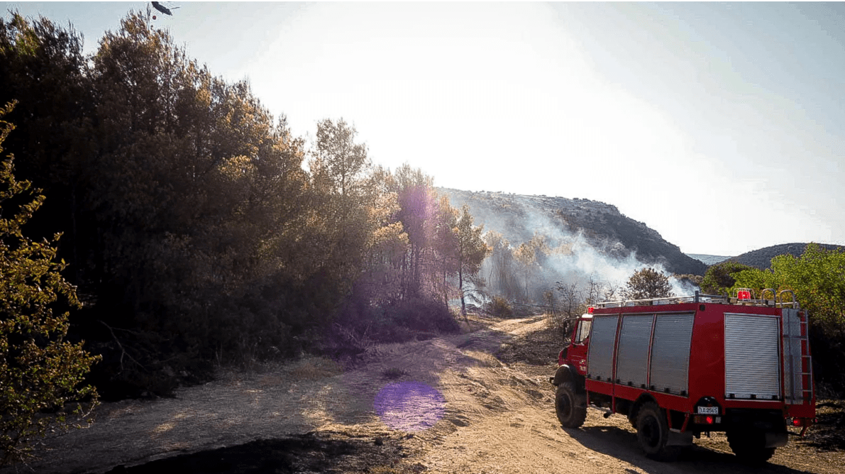 Ανετράπη πυροσβεστικό όχημα σε χαράδρα, κοντά στο μέτωπο της φωτιάς που καίει ανάμεσα στον Πισσώνα και το Αφράτι στην Εύβοια.