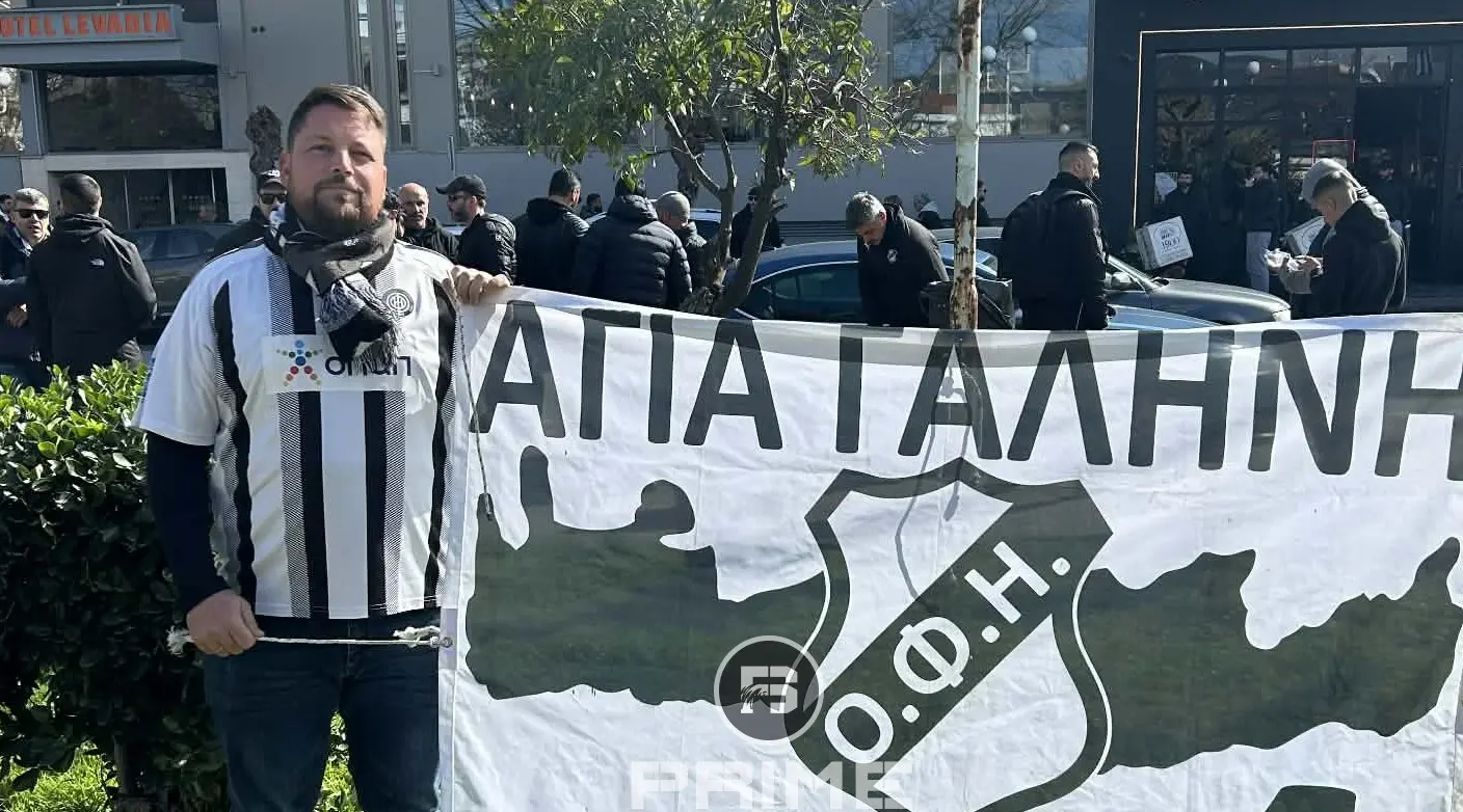 Η εικόνα στη Λιβαδειά είναι χαρακτηριστική: σημαίες, κασκόλ, χαμόγελα και συγκίνηση. Μια ασπρόμαυρη οικογένεια που ταξίδεψε εκατοντάδες χιλιόμετρα για να σταθεί δίπλα στην ομάδα της.