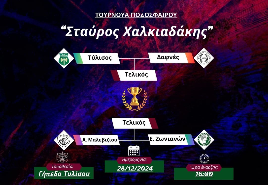 Σε προηγούμενο ρεπορτάζ, το Primesport.gr σάς είχε ενημερώσει για το Τουρνουά Ποδοσφαίρου, όπου διοργανώνει η Τύλισος στη μνήμη του επί χρόνια παράγοντα και Δημάρχου Τυλίσου, Σταύρου Χαλκιαδάκη, με τη συμμετοχή των ομάδων των Δαφνών, του Αλόγου Μαλεβιζίου και του Ερμή Ζωνιανών.