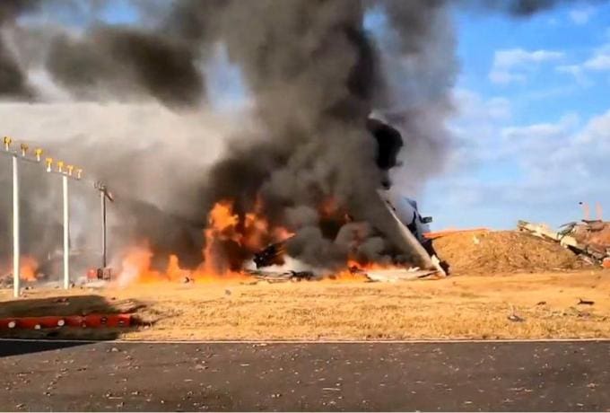 Σε φωτογραφία που μετέδωσε το πρακτορείο εικονίζεται πυκνός μαύρος καπνός να αναδίδεται από τον τόπο της συντριβής, πλάι σε διάδρομο.