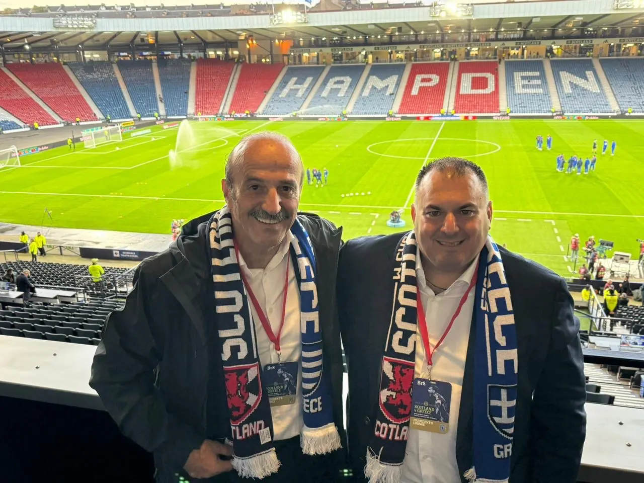 Η Εθνική μας ομάδα δίνει ένα καθοριστικό παιχνίδι σήμερα στις 9.45 μ.μ στη Γλασκώβη με αντίπαλο την Σκωτία για τα προκριματικά του Μουντιάλ 2026 και ο αναπληρωτής πρόεδρος της ΕΠΟ και πρόεδρος της ΕΠΣΗ Νίκος Τζώρτζογλου μαζί με τον αναπληρωτή πρόεδρο της ΕΠΣΗ Γιώργο Πλούταρχο Κουτεντάκη δεν θα μπορούσαν να λείψουνε από αυτή την σημαντική αναμέτρηση.