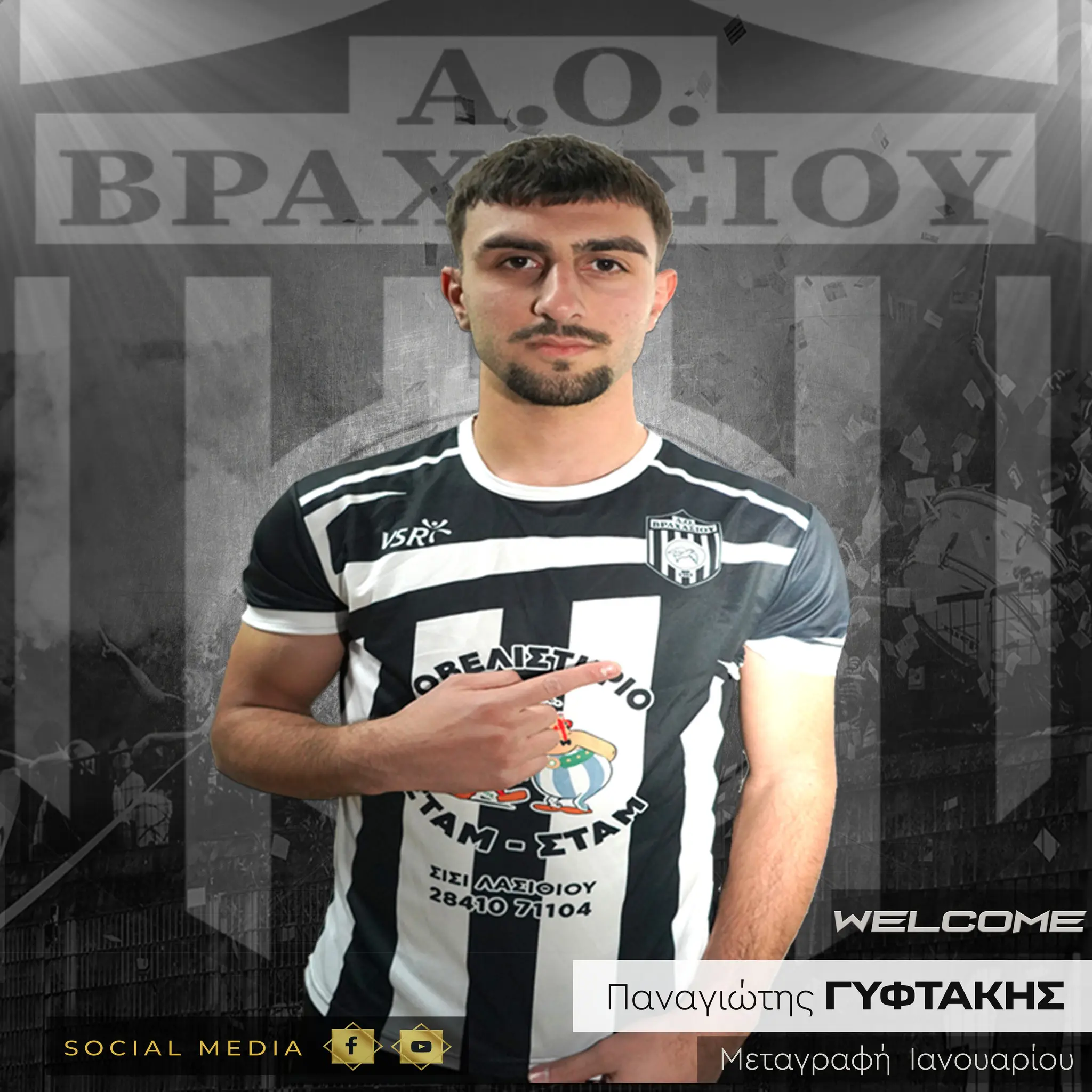 Ποδοσφαιριστής της ομάδας μας είναι ο Παναγιώτης Γυφτάκης, ο οποίος ήρθε σε συμφωνία με το Διοικητικό Συμβούλιο και θα αποτελεί μέλος του ρόστερ του ΑΟ Βραχασίου για το υπόλοιπο της φετινής αγωνιστικής χρονιάς.