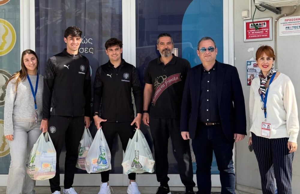 To μεσημέρι της Τρίτης (16/12) αντιπροσωπεία της ΠΑΕ ΟΦΗ 1925, αποτελούμενη από τον Υπεύθυνο Εμπορικού τμήματος, Γιώργο Τσιράκο και τους ποδοσφαιριστές, Κέβιν Λέουις και Κωνσταντίνο Κωστούλα, μαζί με τον ιδιοκτήτη της εταιρίας «Καλημέρα Φρούτα», κ. Μιχάλη Μπουλούκα, παρέδωσαν τρόφιμα μακράς διάρκειας και είδη πρώτης ανάγκης στις κεντρικές εγκαταστάσεις του Οργανισμού.