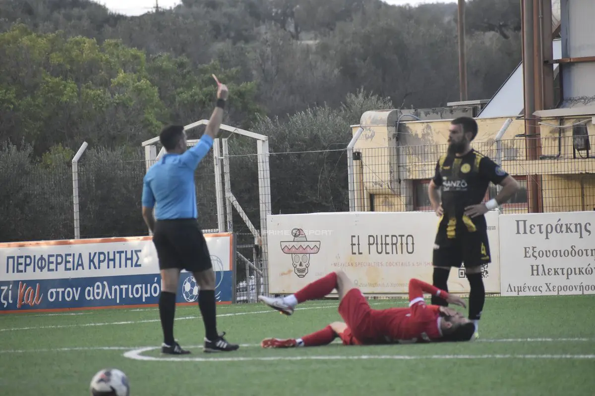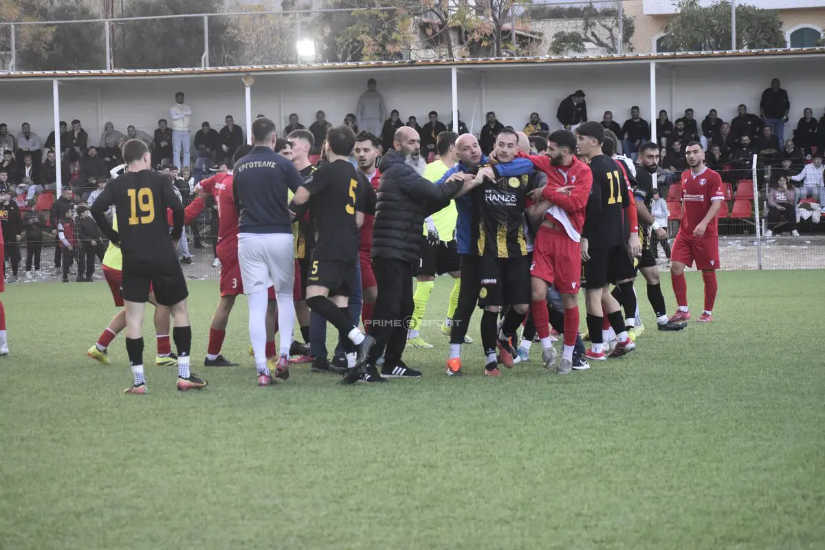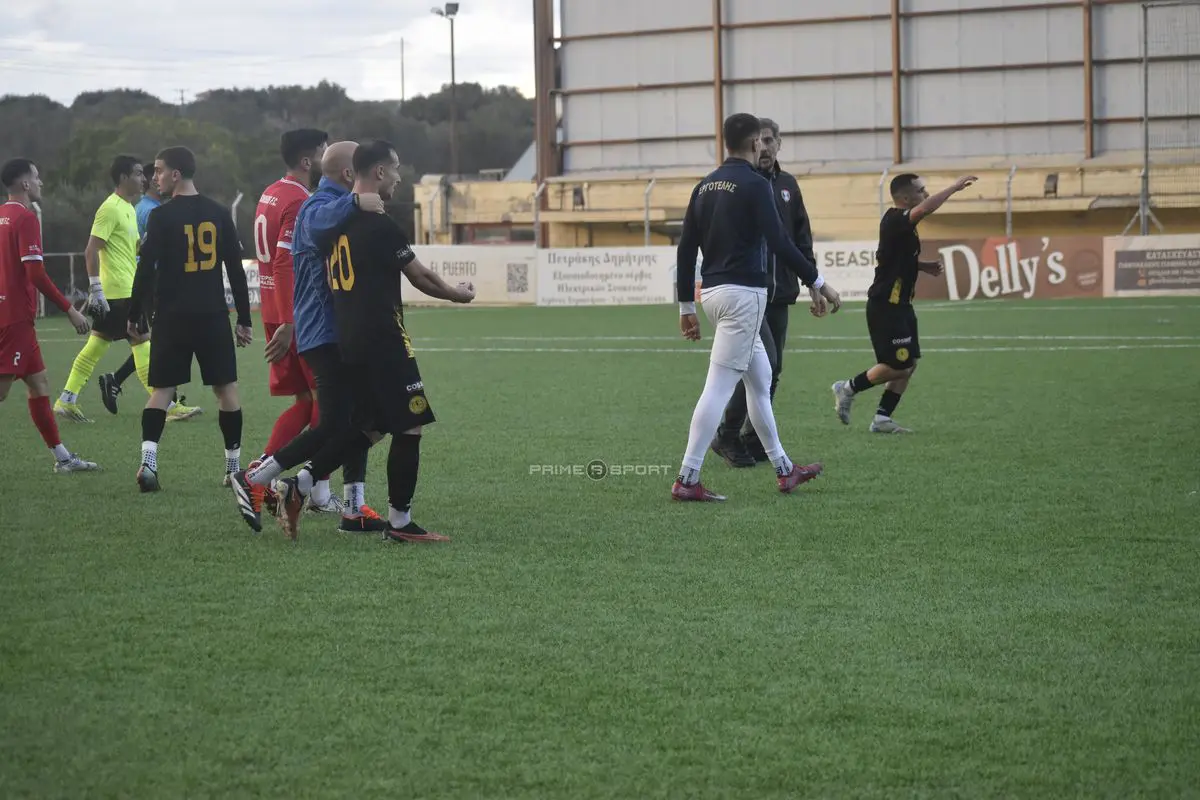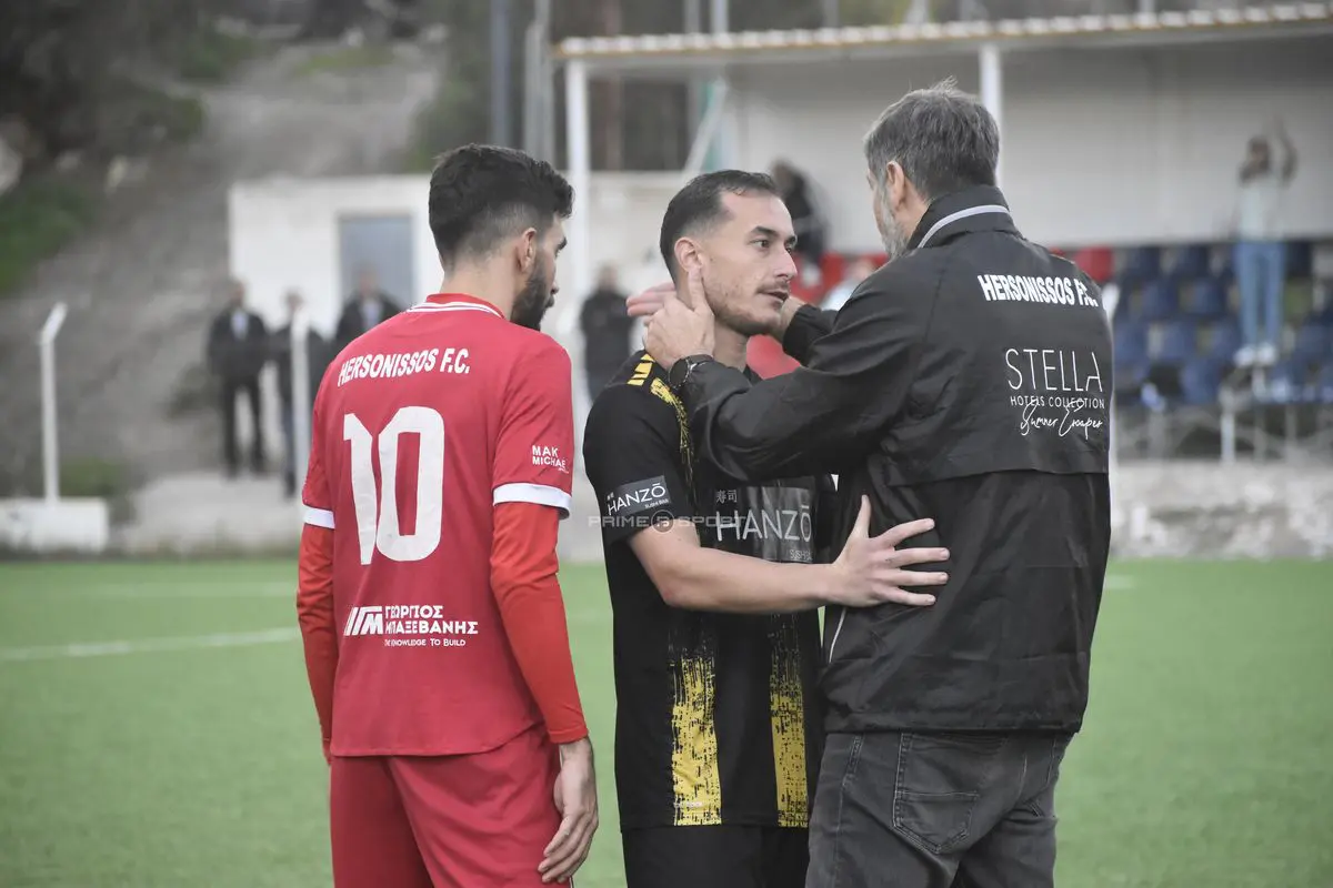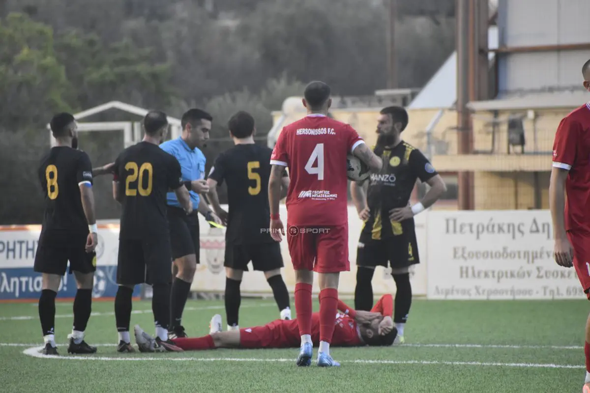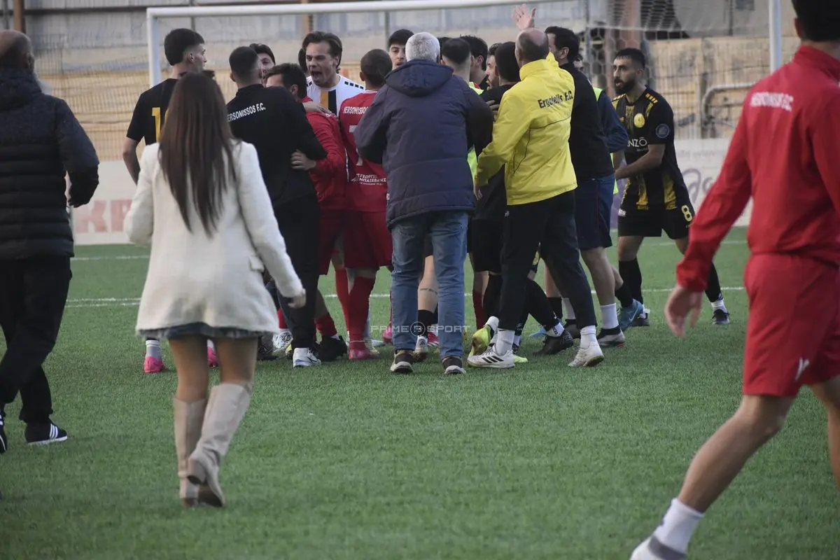 Η αναμέτρηση είχε ένταση, δυνατές μονομαχίες και στιγμές που θύμισαν μάχη σώμα με σώμα, στο γήπεδο της Χερσονήσου, με αποβολές, τόσο ποδοσφαιριστών όσο και του προπονητή του Εργοτέλη, Ηλία Κώτσιου, αφού ο αγωνιστικός χώρος για λίγα λεπτά είχε μετατραπεί σε… πεδίο μάχης.