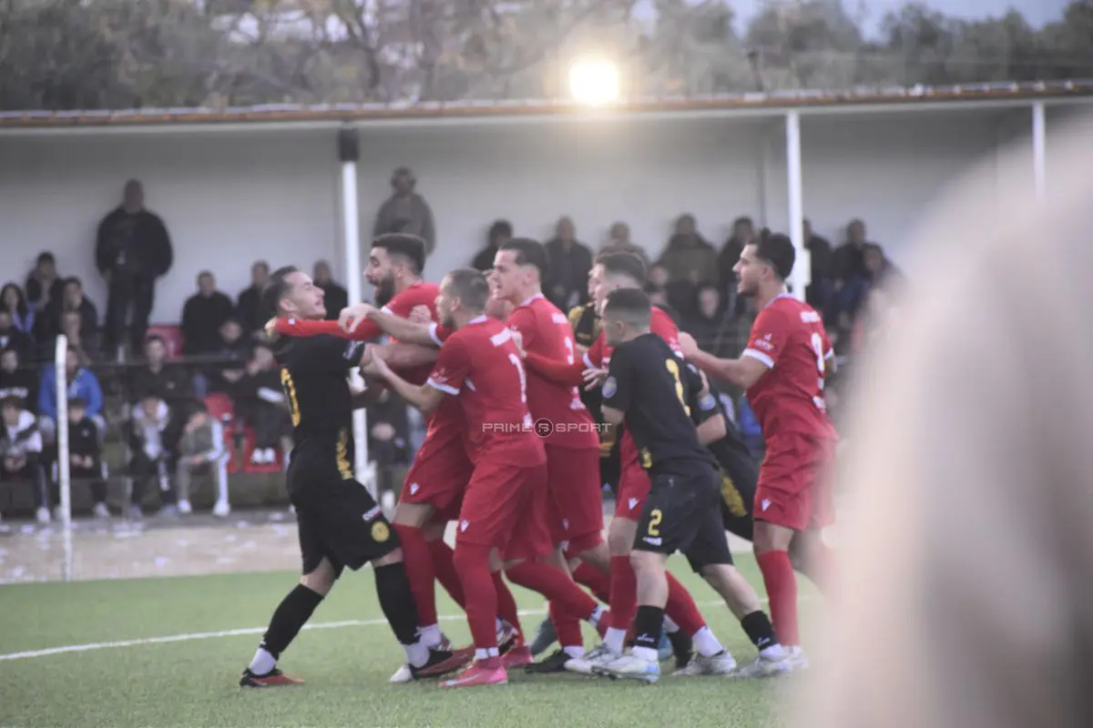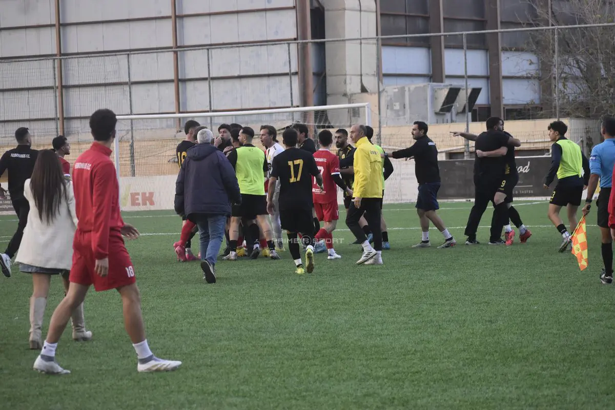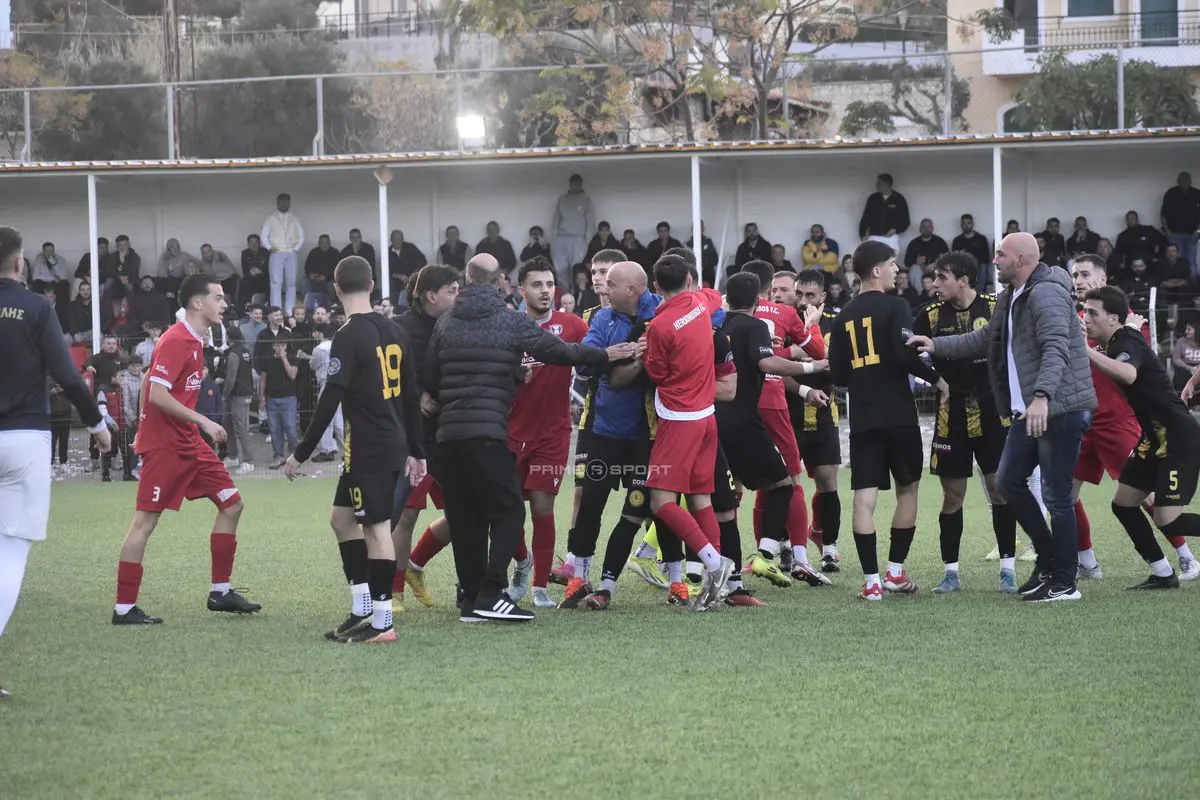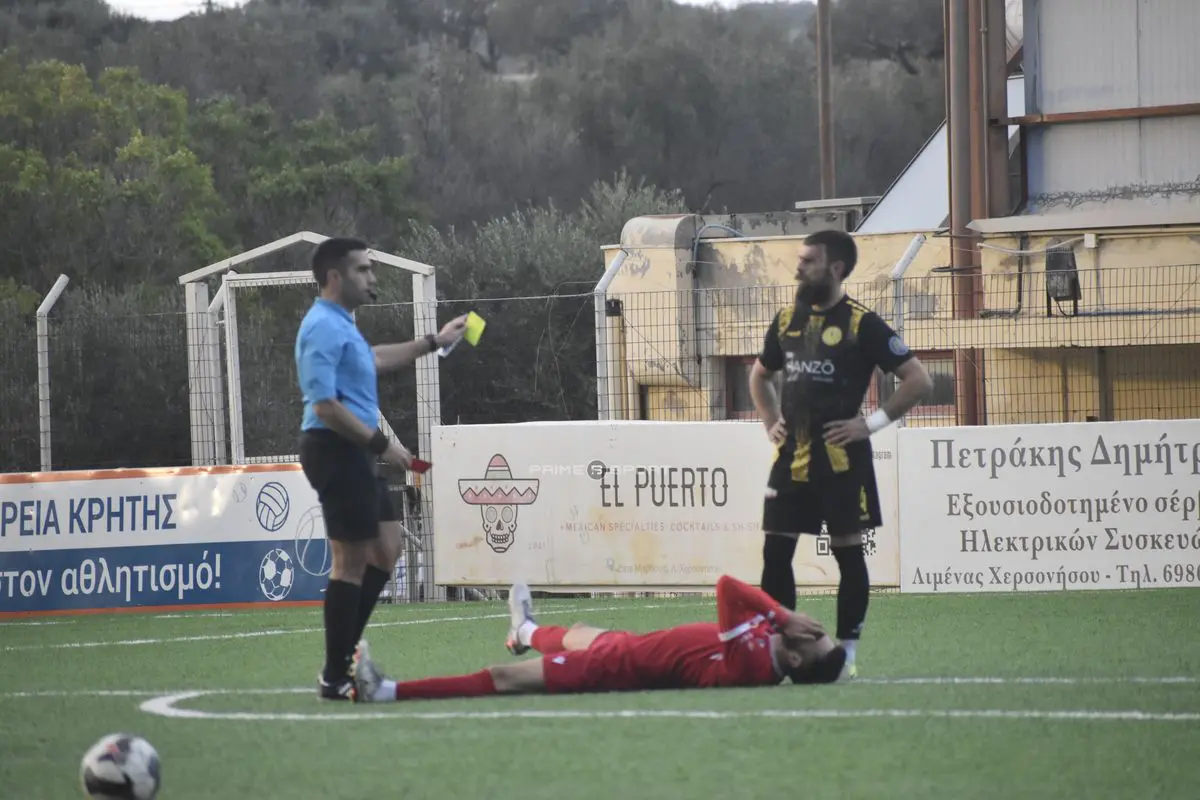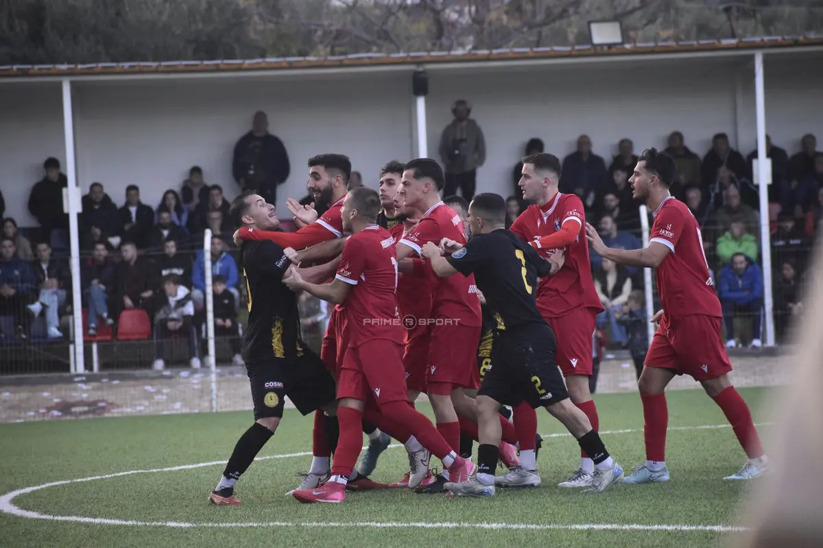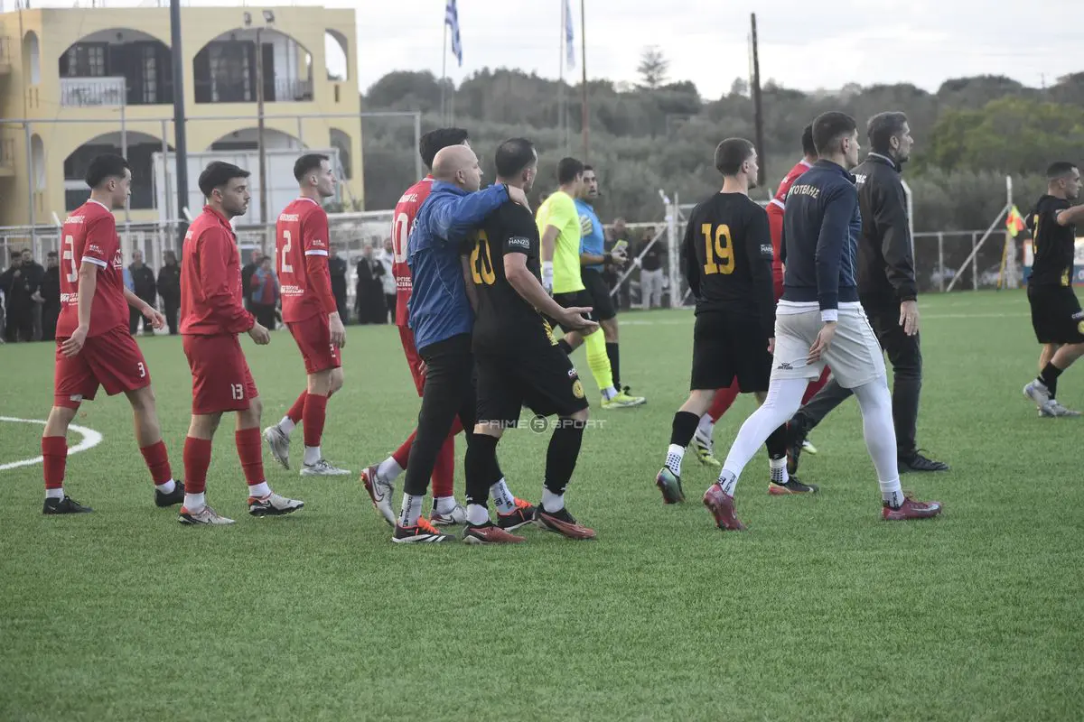 Η αναμέτρηση είχε ένταση, δυνατές μονομαχίες και στιγμές που θύμισαν μάχη σώμα με σώμα, στο γήπεδο της Χερσονήσου, με αποβολές, τόσο ποδοσφαιριστών όσο και του προπονητή του Εργοτέλη, Ηλία Κώτσιου, αφού ο αγωνιστικός χώρος για λίγα λεπτά είχε μετατραπεί σε… πεδίο μάχης.