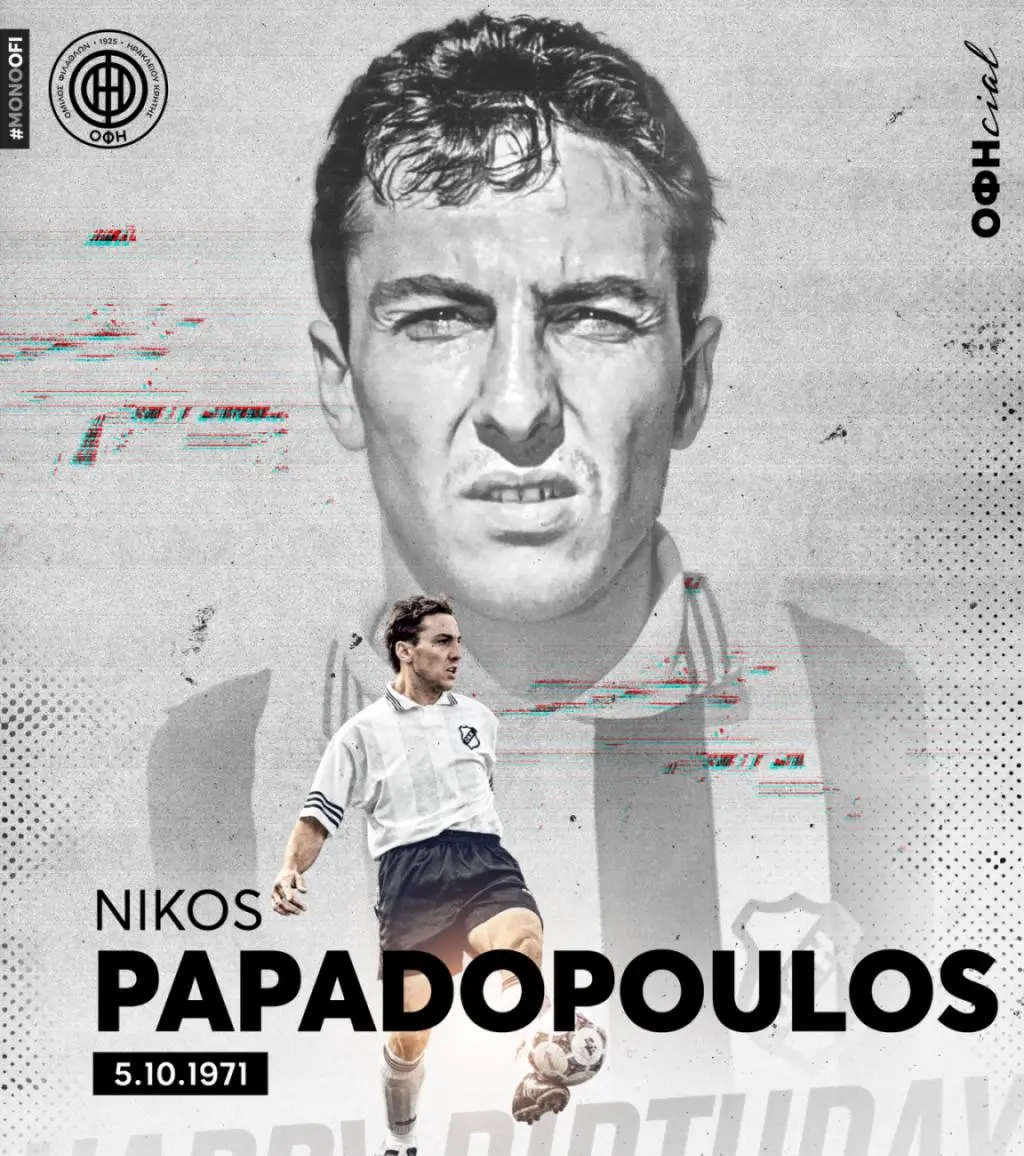 “Xρόνια πολλά. Ο Νίκος Παπαδόπουλος, στα εννέα χρόνια που αγωνίστηκε με την ομάδα μας, μέτρησε συνολικά 269 συμμετοχές, όντας μεταξύ των πρώτων δέκα σε συμμετοχές ποδοσφαιριστών στην ιστορία του ΟΦΗ.